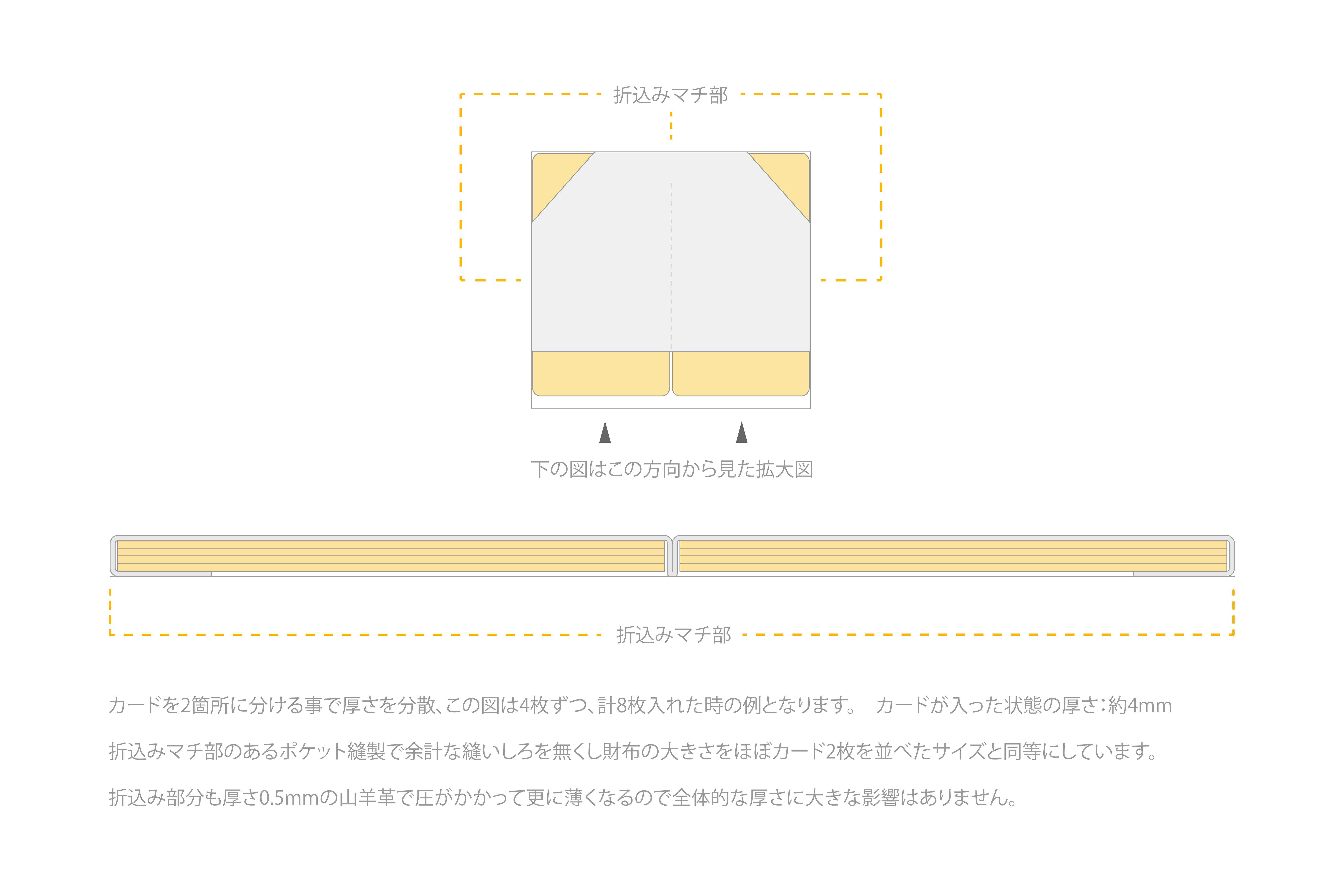 Thin-profile wallets have become common in recent years. However, a common issue with thin wallets is that "while the wallet itself is thin, it becomes thick when you actually put bills, coins, and cards inside." While the wallet's inherent thinness is important, we believe "maintaining thinness even when filled" is equally crucial.