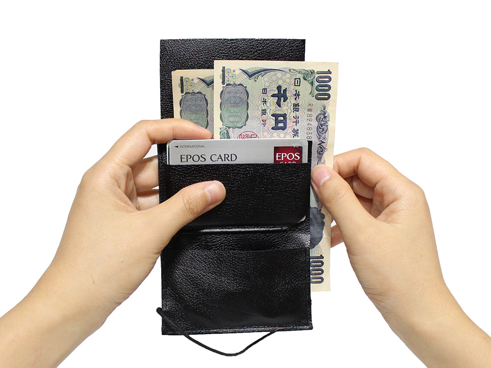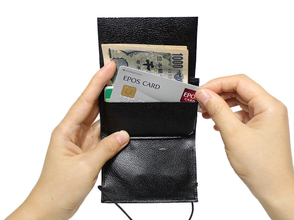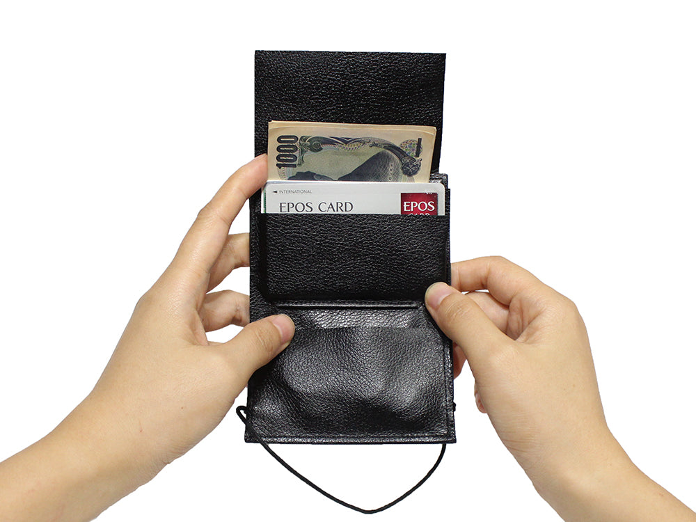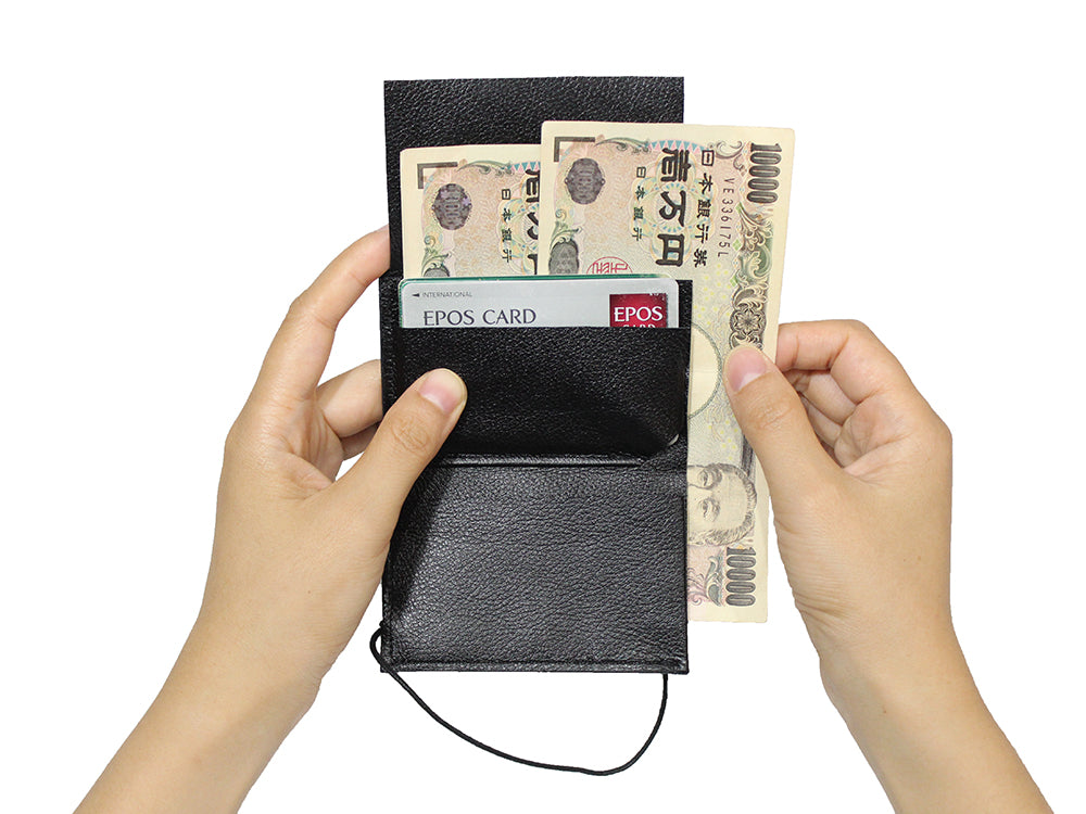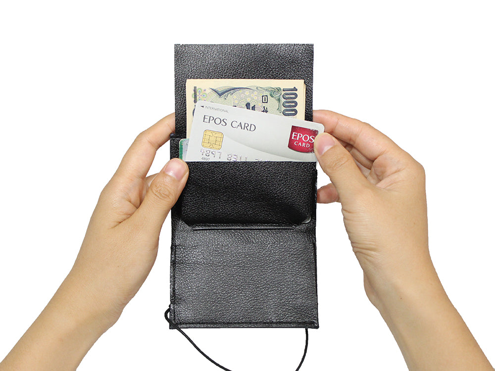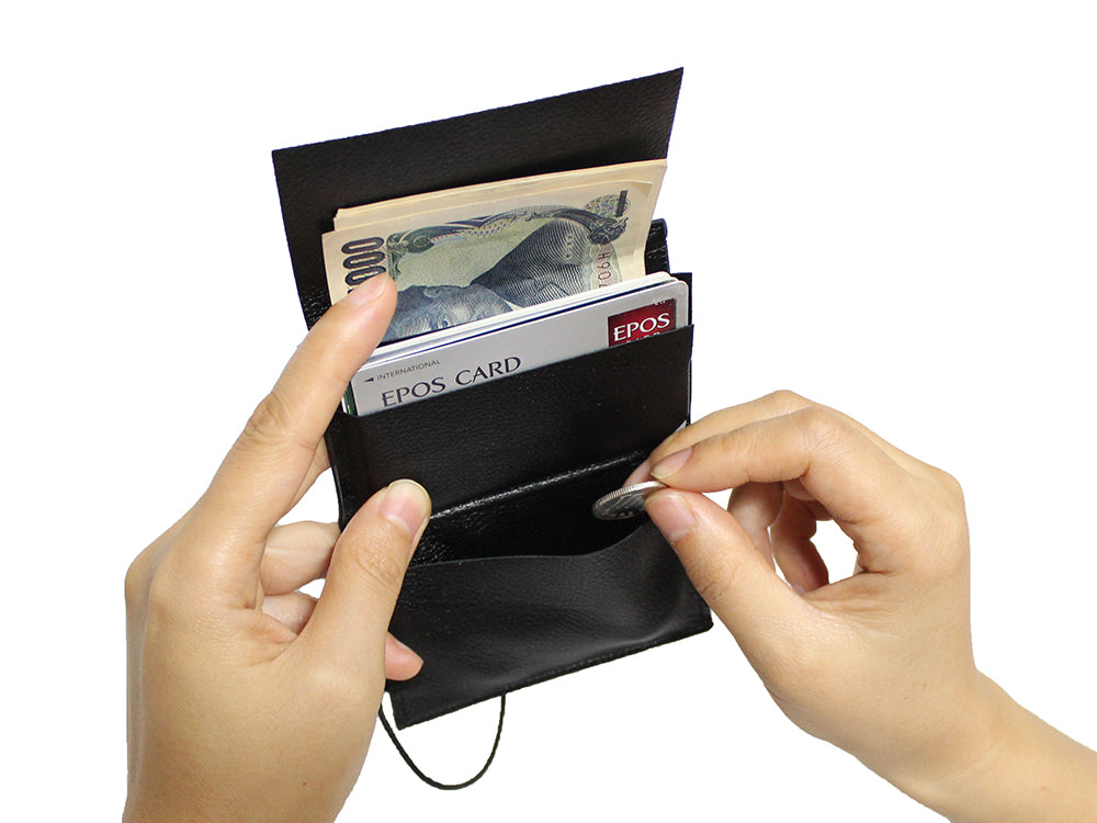 - 紙幣15-20枚、100硬貨20-30枚、カード6-12枚程度を収納可能です。
