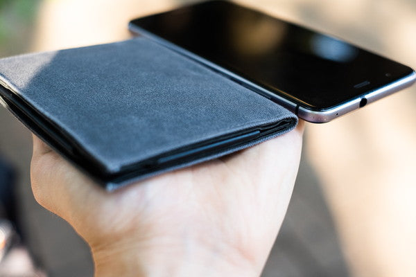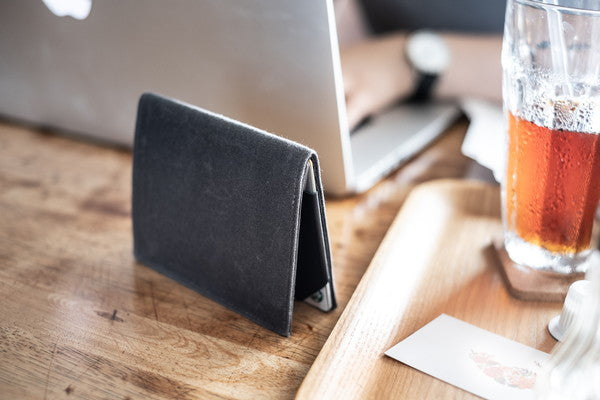 Tenuis CV (旧 Tenuis 3) は帆布とゴートレザー(ヤギ革)を使うことで耐久性を落とさず、紙のように薄い6mmの薄さを実現。カード・硬貨を入れてもかさばらない、革新的なミニマル財布です。Tenuisはラテン語で薄い、CVはCanvas=帆布の意味です。