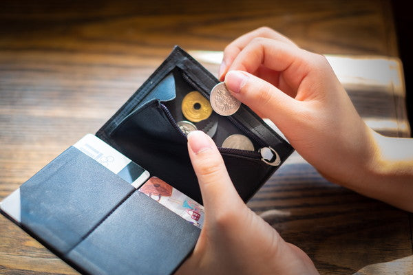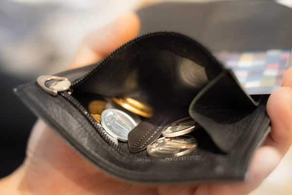 コインディバイダー:コインポケットの中には仕切りがあり、硬貨が片方に寄ることを防ぎ財布全体をなるべく薄く、平らに保つ効果があります。